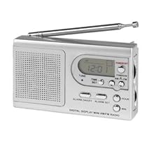 SC1100 - DIGITAL AM/FM RADIO - Portable AM/FM/SW1-2 4 band radio AC/DC compatible Digital readout with LCD display Time display Alarm function Volume control Analog tuning Built-in speakers Telescopic antenna Foldable handle Power by 2-AAA size batteries (not included) Built-In Hand Strap